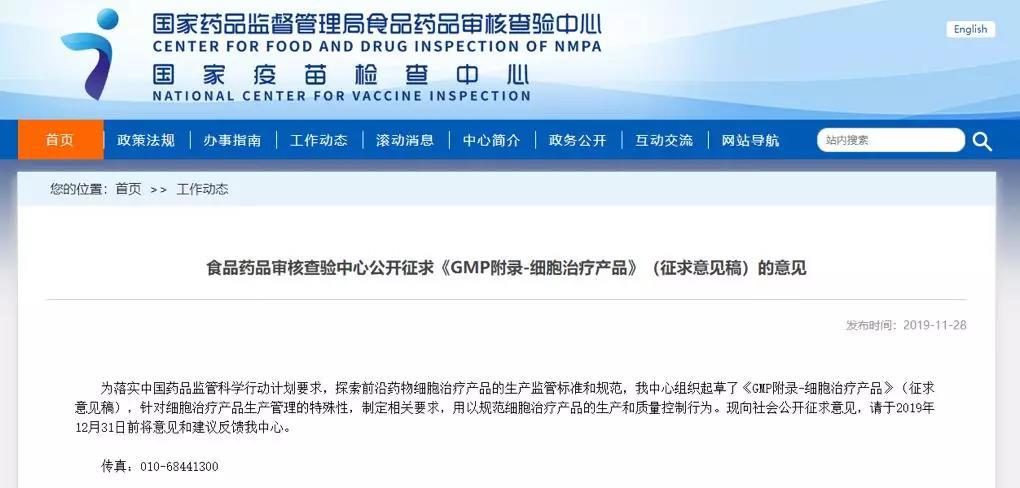 為落實(shí)中國(guó)藥品監(jiān)管科學(xué)行動(dòng)計(jì)劃要求,探索前沿藥物細(xì)胞治療產(chǎn)品的生產(chǎn)監(jiān)管標(biāo)準(zhǔn)和規(guī)范,食品藥品審核查驗(yàn)中心組織起草了《GMP附錄-細(xì)胞治療產(chǎn)品》(征求意見(jiàn)稿),針對(duì)細(xì)胞治療產(chǎn)品生產(chǎn)管理的特殊性,制定相關(guān)要求,用以規(guī)范細(xì)胞治療產(chǎn)品的生產(chǎn)和質(zhì)量控制行為,現(xiàn)向社會(huì)公開(kāi)征求意見(jiàn)。