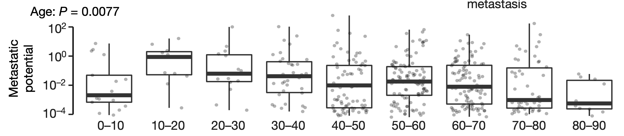 有一個出乎意料的現(xiàn)象是:癌細(xì)胞的轉(zhuǎn)移潛能降低與患者年齡增加之間竟然存在相關(guān)性。對于這一點,研究人員表示需要進(jìn)一步的研究確定。