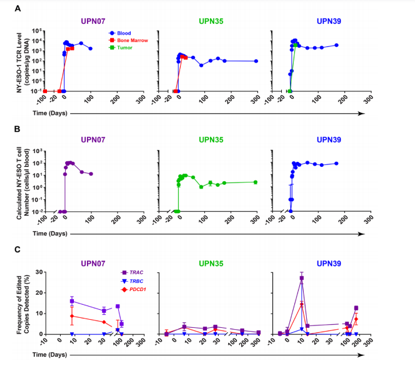 研究結(jié)果發(fā)現(xiàn),相比原始的CAR-T細(xì)胞在體內(nèi)不到一周的生存期,編輯后的細(xì)胞可在體內(nèi)持續(xù)存在長(zhǎng)達(dá)9個(gè)月的時(shí)間。在回輸患者體內(nèi)幾個(gè)月后,研究人員抽取了更多血液,并分離了CRISPR編輯的細(xì)胞進(jìn)行研究。結(jié)果表明,這些細(xì)胞仍然具有殺死腫瘤的能力。