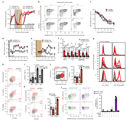 當(dāng)將受保護(hù)的Dual-CAR-T細(xì)胞給送到HIV感染的小鼠體內(nèi)時(shí),這些研究人員觀察到HIV復(fù)制速度變得較慢,而且相比于未給送Dual-CAR-T細(xì)胞的小鼠,它們具有更少的HIV感染細(xì)胞。研究人員,觀察到這些小鼠血液中的HIV病毒數(shù)量減少,CD4+T細(xì)胞得以保存下來。此外,當(dāng)在HIV感染的小鼠中組合使用Dual-CAR-細(xì)胞細(xì)胞和ART時(shí),這種病毒被更快地抑制,這就導(dǎo)致HIV病毒庫比僅接受ART治療的小鼠更小。
