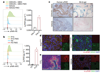 為了找到針對(duì)衰老細(xì)胞的抗原,研究人員分析了衰老的人和小鼠細(xì)胞中發(fā)現(xiàn)的跨膜蛋白的表達(dá)。對(duì)先前發(fā)表的關(guān)于人類組織中蛋白和RNA表達(dá)的數(shù)據(jù)進(jìn)行的檢查顯示,uPAR要么未被檢測(cè)到,要么,在人體的大部分器官(包括中樞神經(jīng)系統(tǒng)、心臟和肝臟)中以低水平存在。然而,研究人員發(fā)現(xiàn)uPAR在體內(nèi)和體外衰老細(xì)胞中都有高表達(dá)。有趣的是,缺乏跨膜區(qū)域的一種可溶性u(píng)PAR (suPAR)是SASP反應(yīng)期間分泌的一種成分。suPAR的存在是一些慢性疾病的標(biāo)志,包括糖尿病和腎病 ,衰老在這些疾病中起作用。