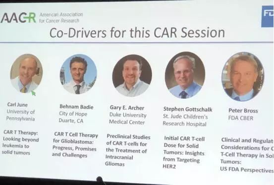 4月17日,本公司董事長兼首席科學家許中偉教授受邀參加本屆AACR最具重量級的CAR-T專場“Scientific and Regulatory Challenges in Developement of CAR-T Therapy for Solid Tumors”。許中偉教授曾經(jīng)作為賓夕法尼亞大學Carl June教授團隊CAR-T項目的研發(fā)主管,在會上,將我們的異體CAR-T“北京方案”及本公司最新的研究進展向原老板Carl June教授進行了簡明的闡述。Carl June教授對于我們公司許中偉教授獨特的創(chuàng)新視角和本公司最新的研究進展給予了充分的肯定和真摯的祝賀。